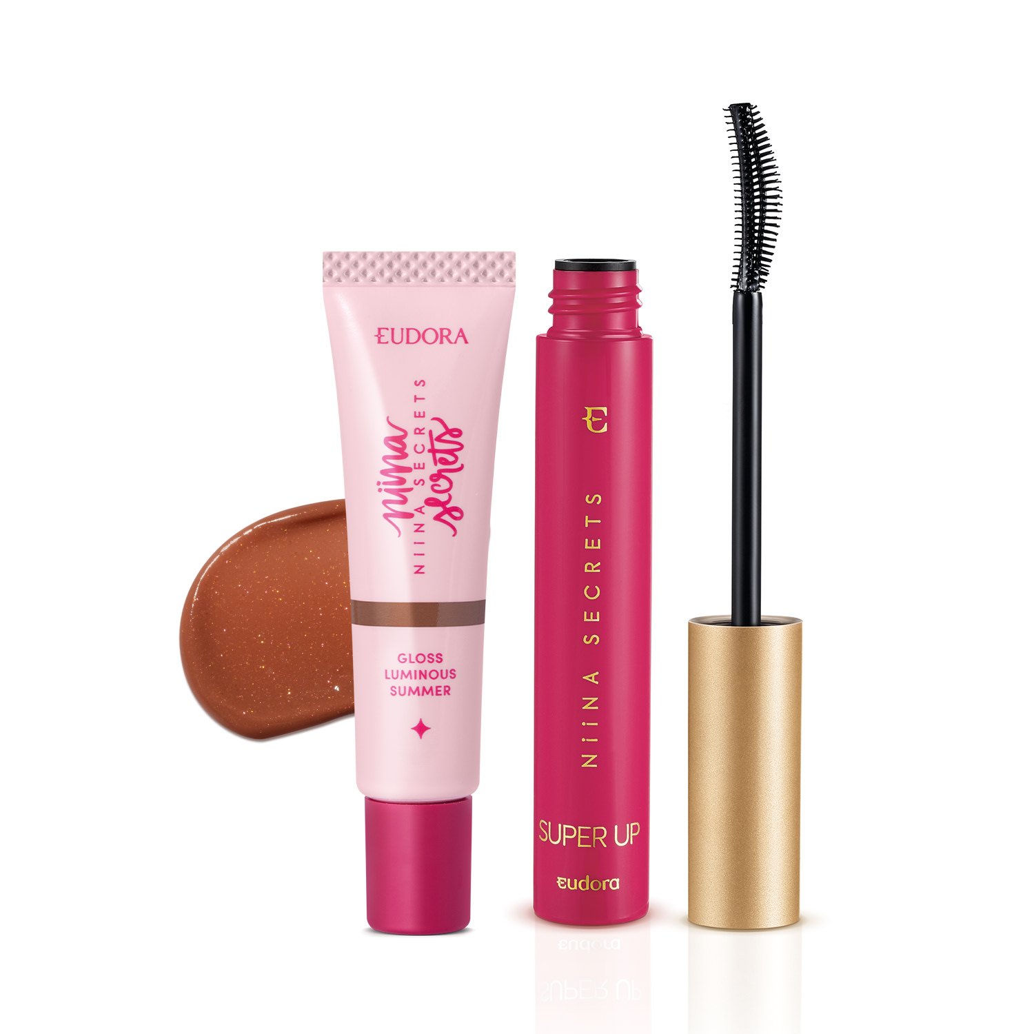 Combo Niina Secrets: Gloss Labial Luminous Marrom 12ml + Máscara para Cílios Super Up 8g