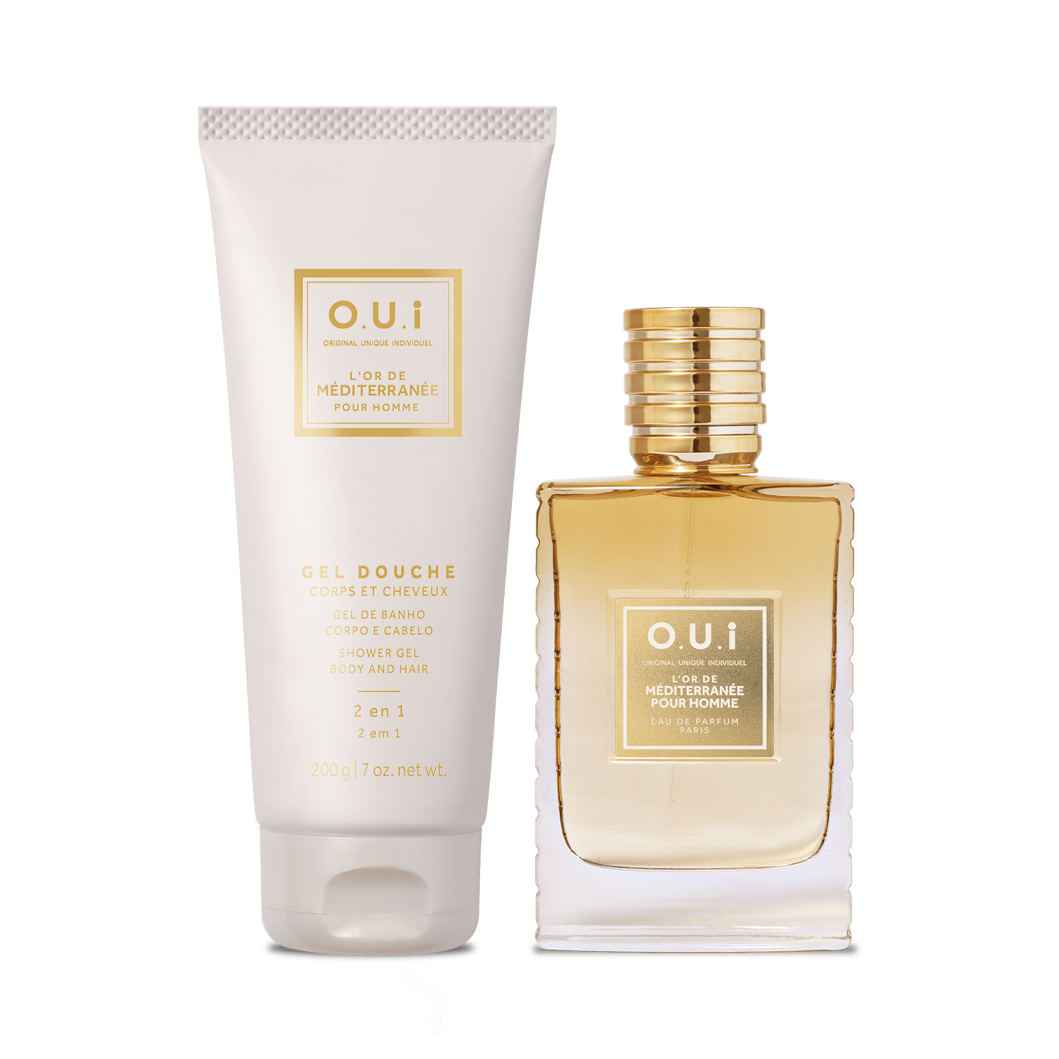 Combo O.U.i L’Or de Méditerranée Pour Homme: Eau de Parfum 75ml + Gel de Banho Corpo e Cabelo 200g