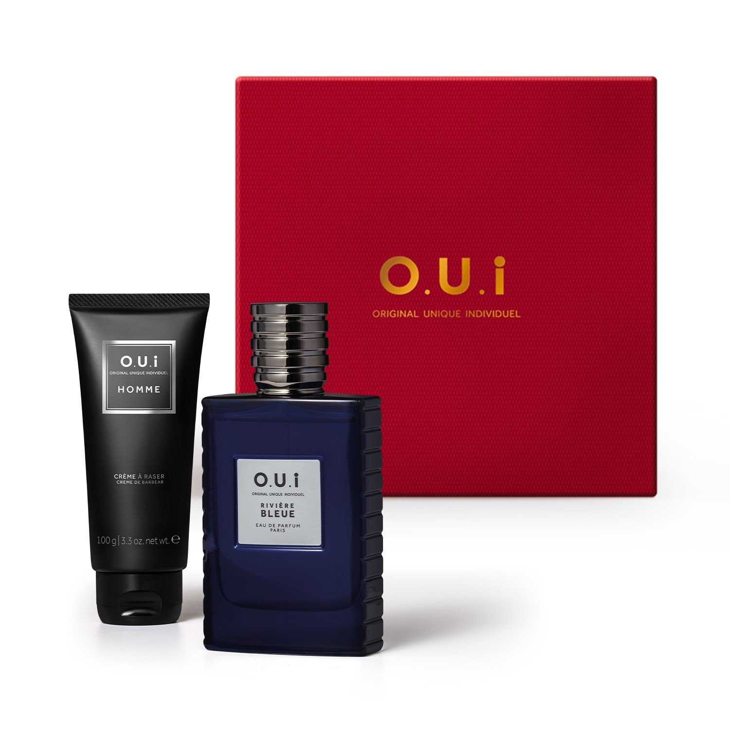 Combo O.U.I Rivière Bleue Eau De Parfum 75ml + Creme De Barbear 100g + Caixa