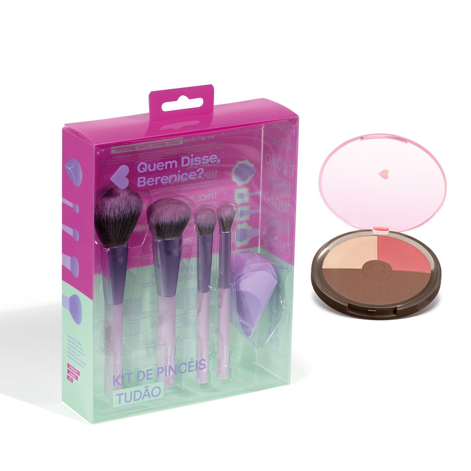 Combo Pó Compacto Facial Multiefeitos Napolitano + Kit de Pinceis Tudão