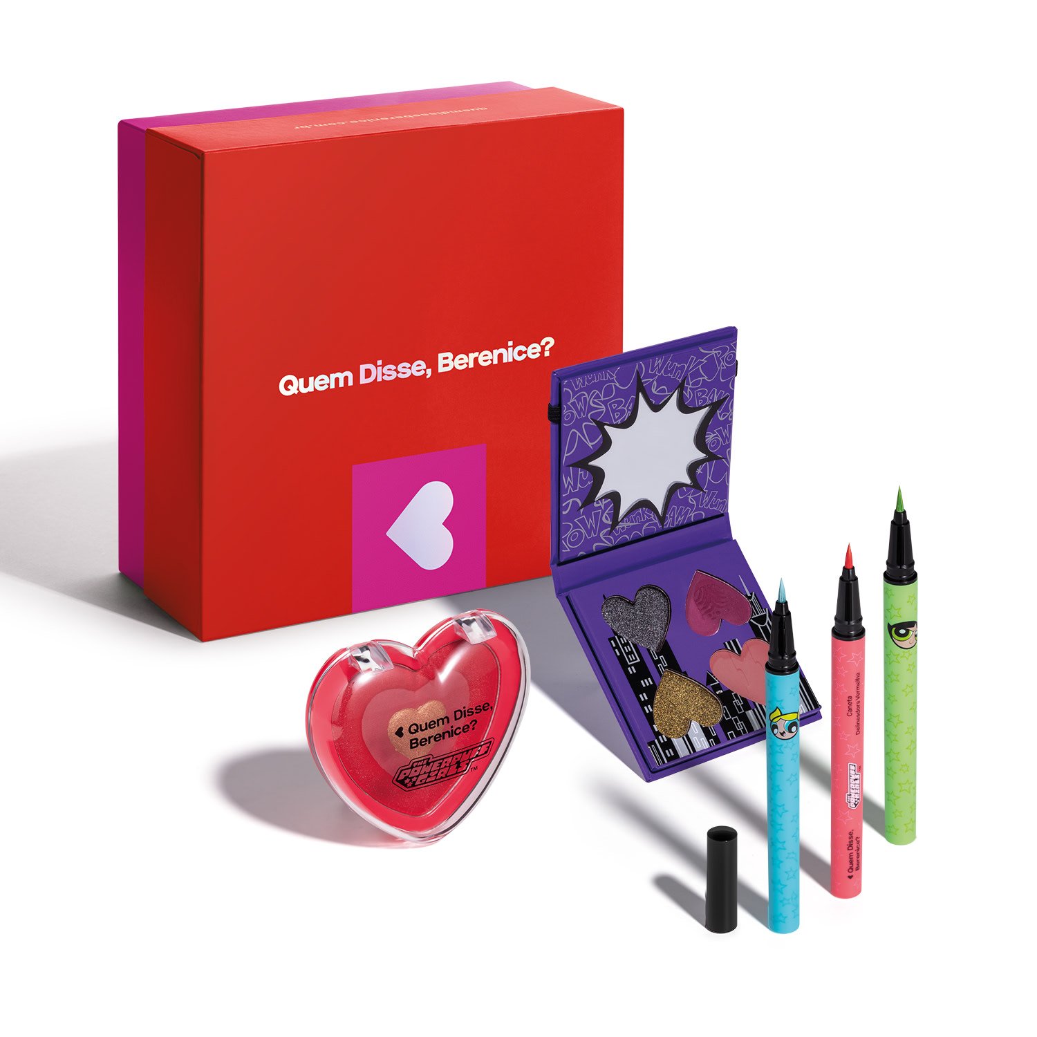 Quem disse, Berenice? e as Meninas Superpoderosas uniram forças para criar a collab perfeita para quem ama ousar na maquiagem! Este combo de maquiagem traz a Mini Paleta de Sombras, o Kit de Canetas Delineadoras e o blush compacto, inspirados nas cores e na força das heroínas de Townsville. Além disso, vem com uma caixa de presente super charmosa. Prepare-se para presentear com a força das Meninas Superpoderosas.