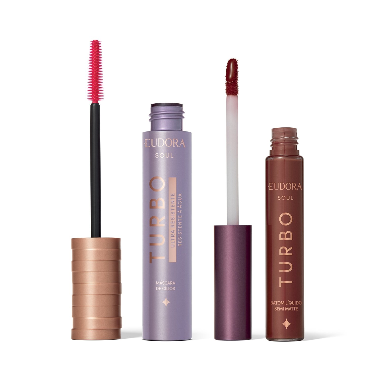 Combo SOUL Turbo: Máscara Cílios Ultra Resistente 10g + Batom Líquido Marrom Turbinado Semi Mate 5ml