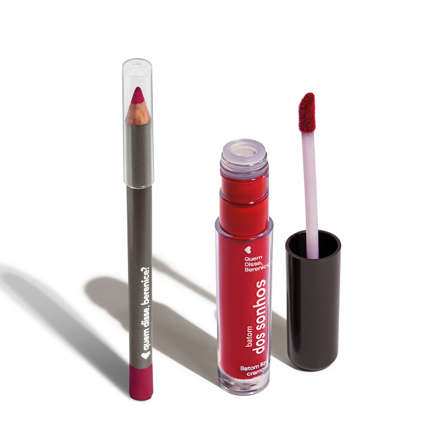 Combo Vermelho: Batom Líquido Cremoso 4ml + Lápis Contorno Labial 1,1g