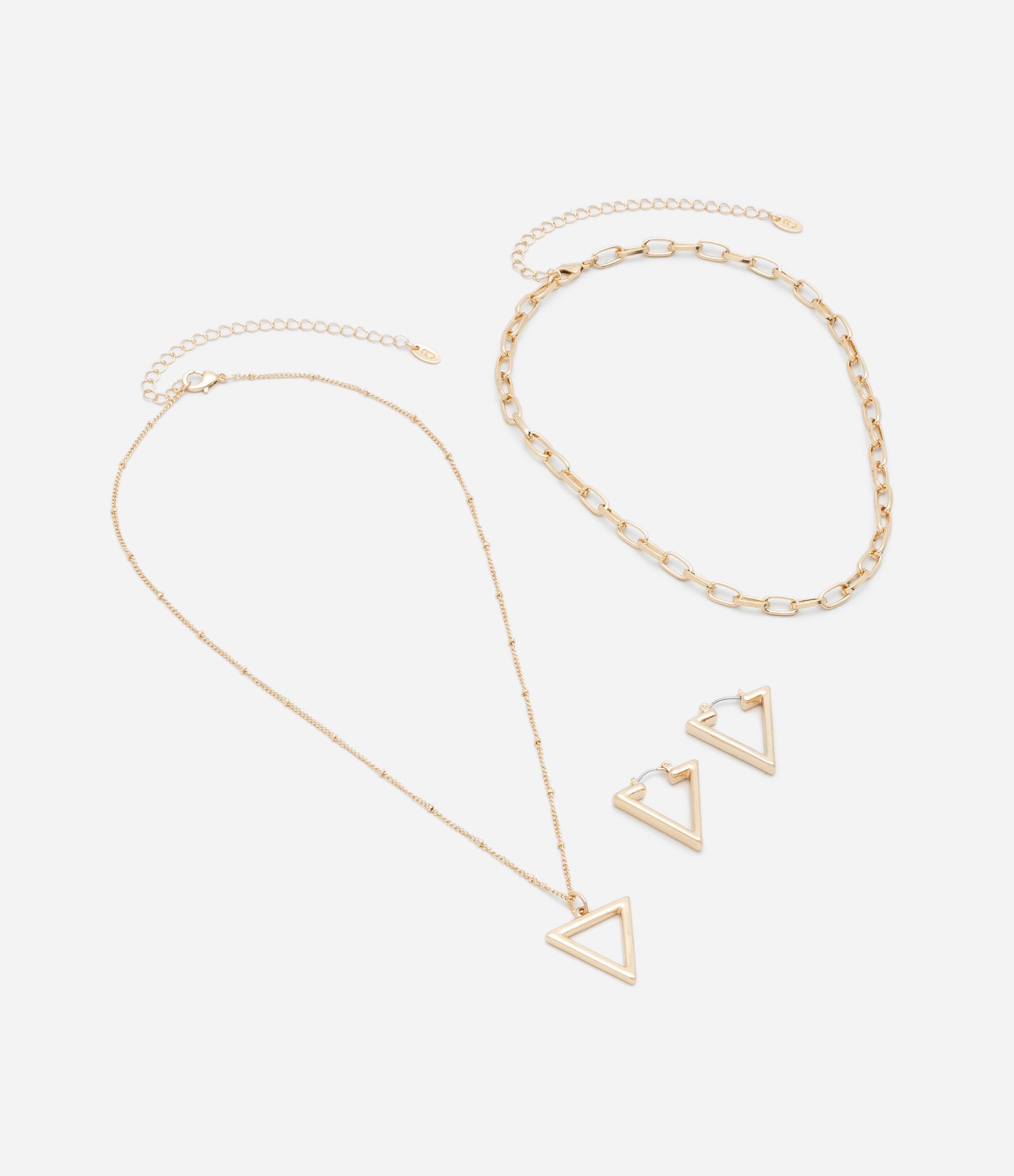 Conjunto Brinco e Colar Camadas com Pingente Triangular