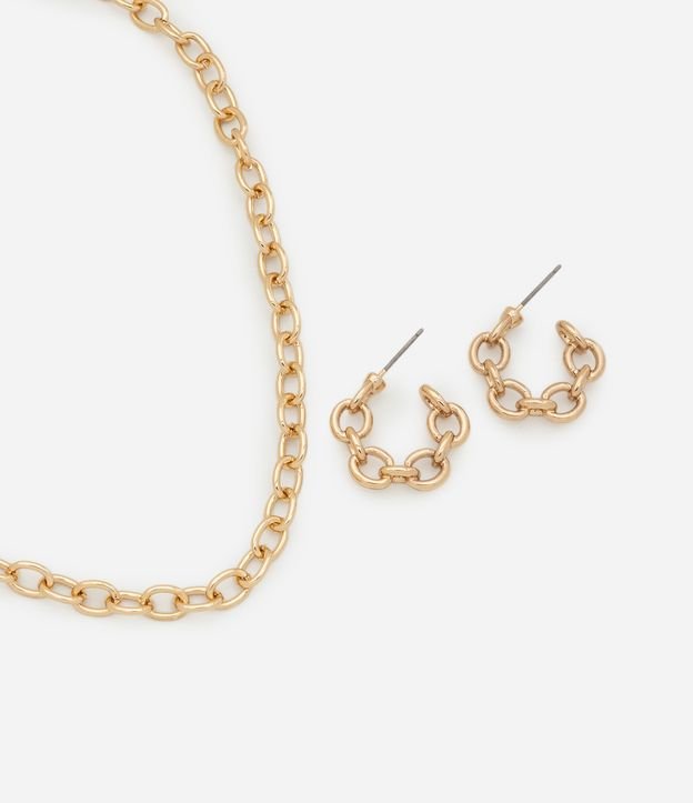 Conjunto Colar com Corrente de Elos e Brinco Argola de Elos Dourado