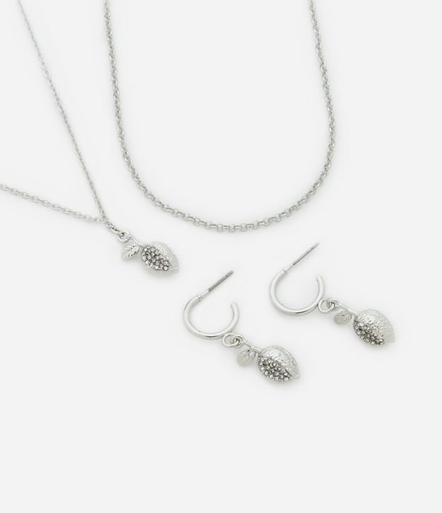 Conjunto Colar e Brinco com Corrente e Pingente Limão Prata