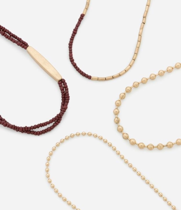 Conjunto com 04 colares femininos em camadas, confeccionados em metal reciclado mais sustentável.