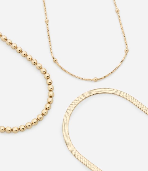 Conjunto com 03 Colares em Metal em Formatos Diversos Dourado