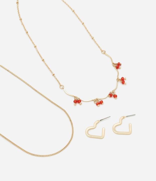 Conjunto de Brinco Coração e Colar Camadas com Cerejas