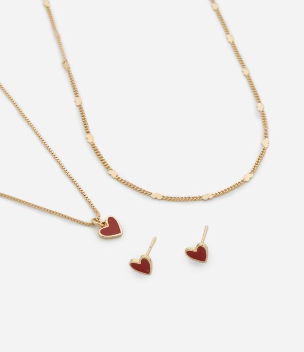 Conjunto de Colar Camadas e Brinco com Pingente de Coração