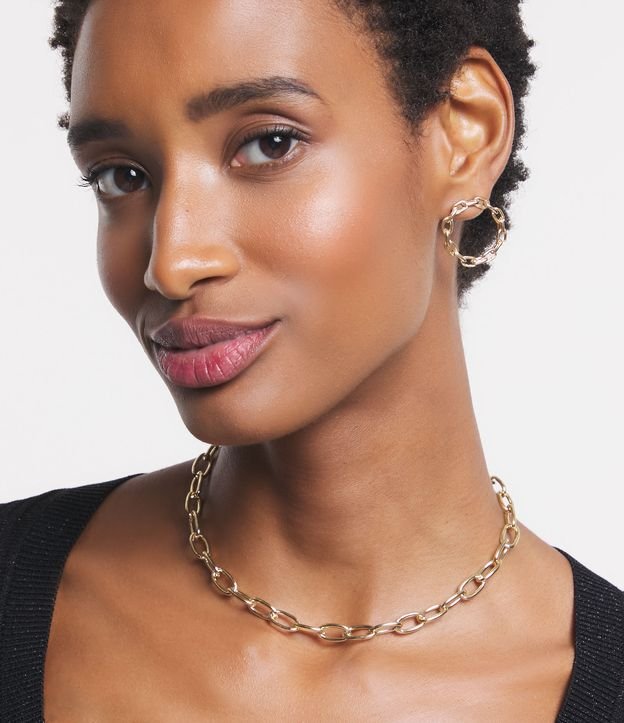 Conjunto de Colar e Brincos com Formato de Corrente