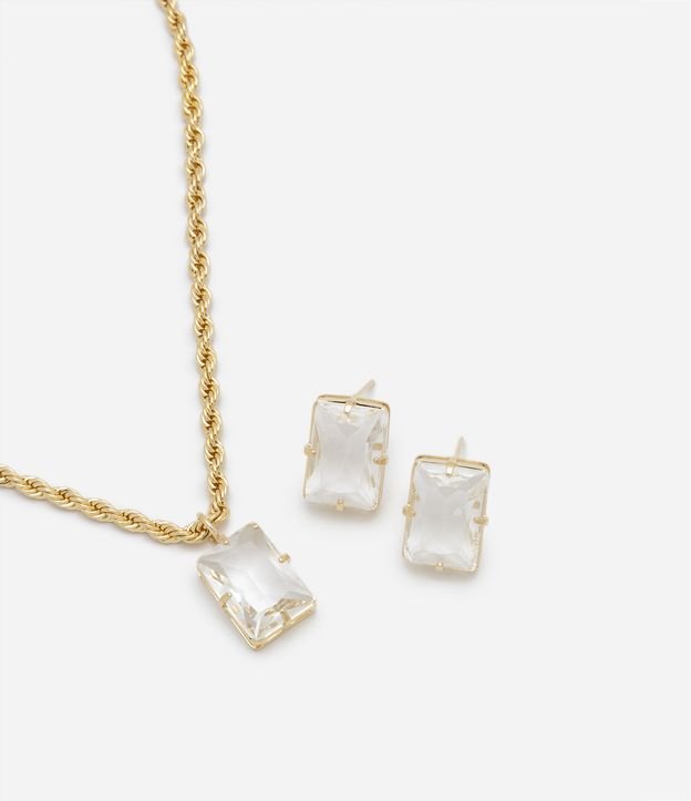 Conjunto de Colar e Brincos com Pingente em Zircônia
