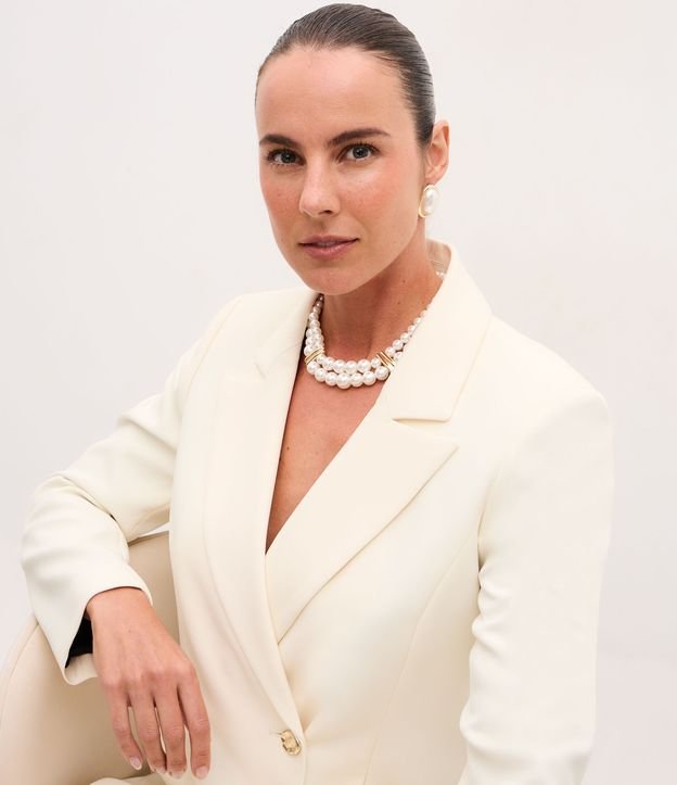 • Conjunto de Colar e Brincos de Pérola com Detalhes Metalizados Branco 3