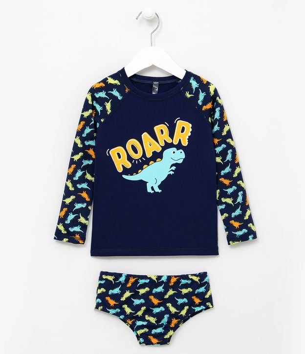 Conjunto de Praia Infantil Proteção UV Estampa de Dinossauros - 1 a 4 anos