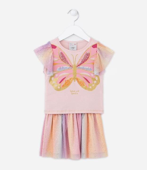 Conjunto Fantasia Infantil com Estampa de Borboleta e Saia em Tule - Tam 1 a 5 Anos