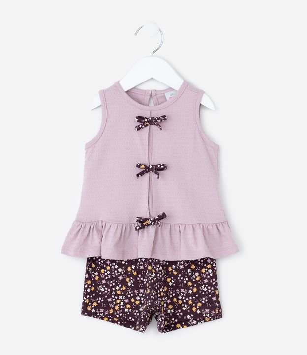 Conjunto Infantil Bata e Short com Estampa Floral – Tam 0 a 18 Meses Lilás