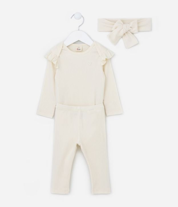Conjunto Infantil Canelado com Babados e Faixa de Cabelo - Tam 0 a 18 meses