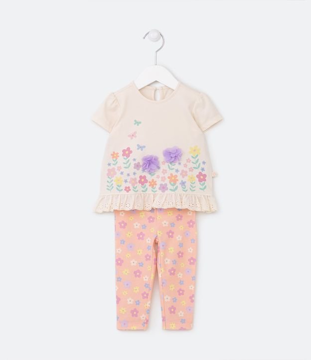 Conjunto Infantil com Babadinho e Estampa de Florzinhas com Organza - Tam 0 a 18 meses