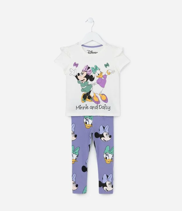 Conjunto Infantil com Babado e Estampa da Minnie e Margarida - Tam 1 a 6 Anos Branco/Lilás