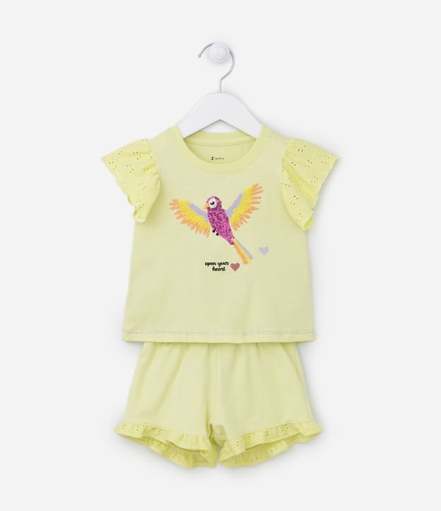 Conjunto Infantil com Blusa Estampa Arara e Shortinho com Babado - Tam 1 a 5 Anos
