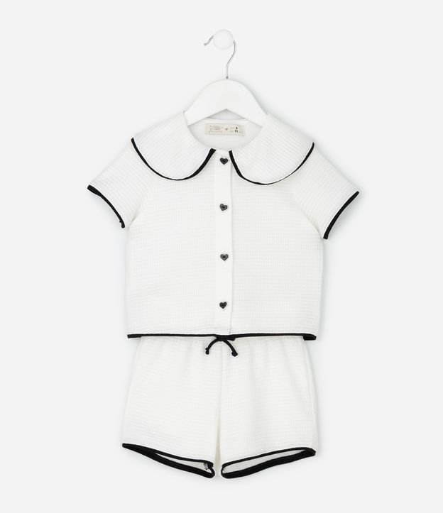 Conjunto Infantil com Blusa Gola Boneca e Short Texturizado – Tam 1 a 5/6 Anos Branco