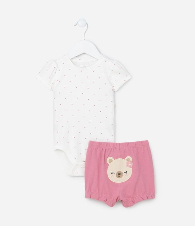 Conjunto Infantil com Bordado Ursinha - Tam 0 a 18 meses