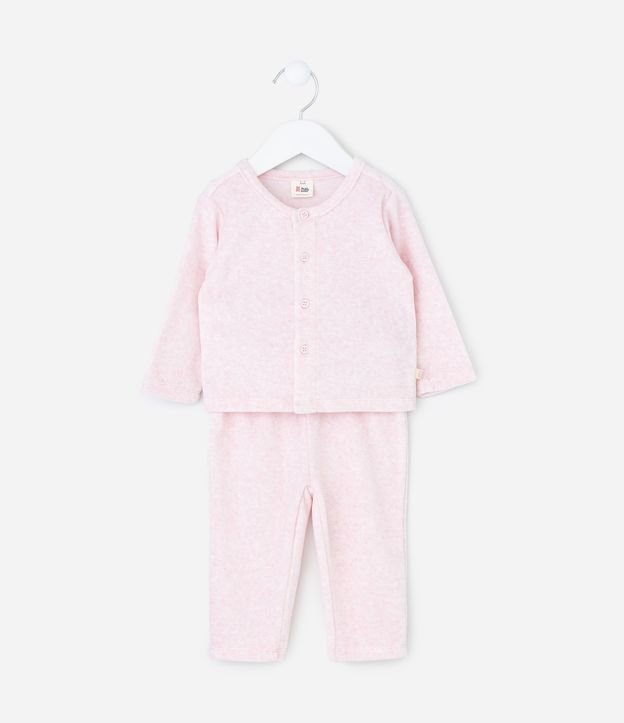 Conjunto Infantil Com Botões E Calça – Tam 0 a 18 Meses Rosa Claro