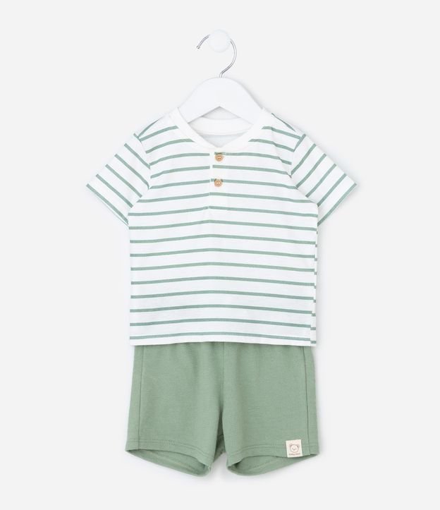 Conjunto Infantil com Camiseta Listrada e Bermuda – Tam 0 a 18 Meses Verde/Branco
