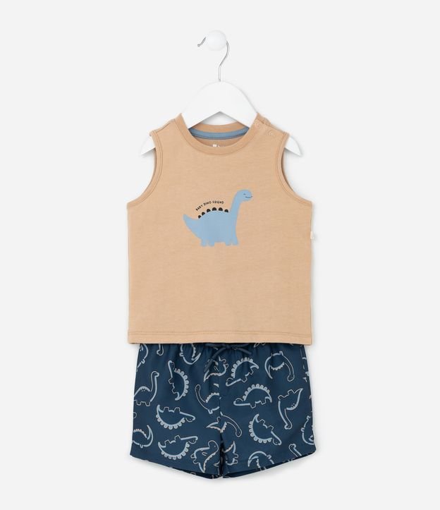 Conjunto Infantil com Estampa de Dino - Tam 3 a 18 Meses Bege/Azul