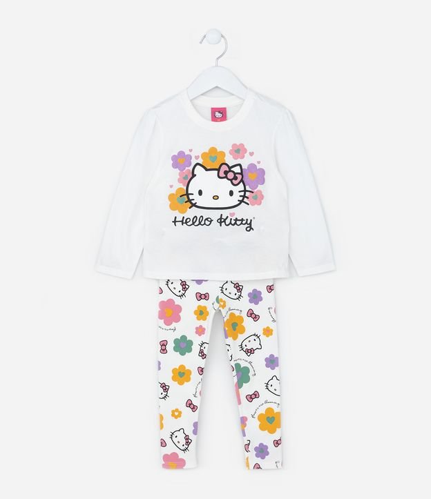 Conjunto Infantil com Estampa Hello Kitty e Florzinhas - Tam 1 a 6 Anos Branco