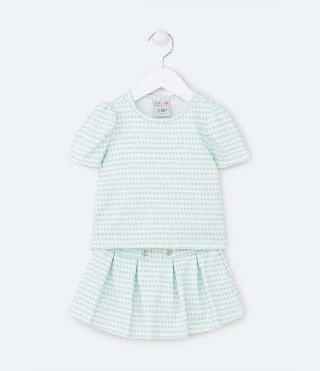Conjunto Infantil com Estampa Pied de Poule e Pregas - Tam 1 a 5 Anos