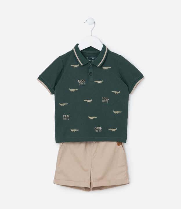 Conjunto Infantil com Polo Bordada e Bermuda em Sarja - 1 a 5/6 Anos Verde/Bege