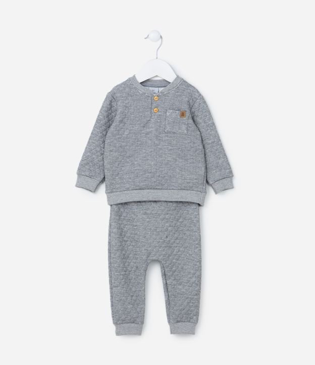 Conjunto Infantil com Textura Matelassê - Tam 0 a 18 meses Cinza