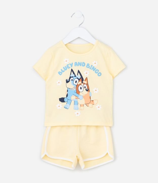Conjunto Infantil em Algodão com Estampa Bluey - Tam 1 a 6 Anos Amarelo