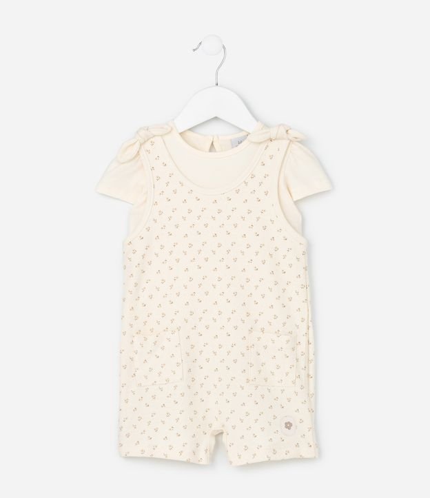 Conjunto Infantil em Cotton com Estampa de Flores - Tam 0 a 18 Meses Bege