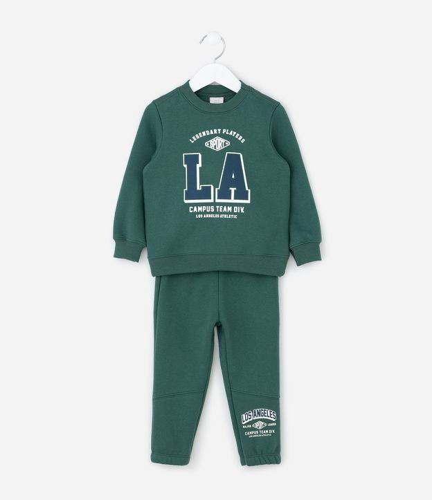 Conjunto Infantil em Moletom com Estampa Lettering College – Tam 1 a 5/6 Anos Verde