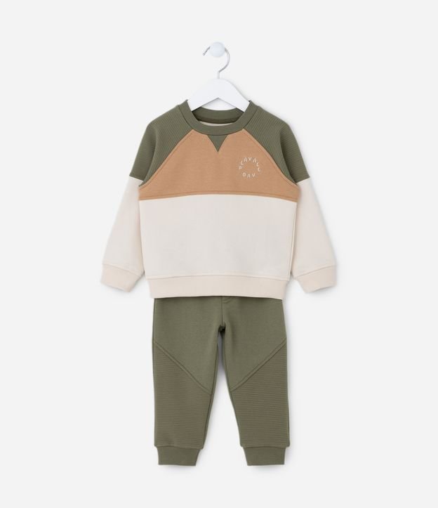 Conjunto Infantil em Moletom com Textura e Recortes Bloco de Cores - Tam 1 a 5 Anos