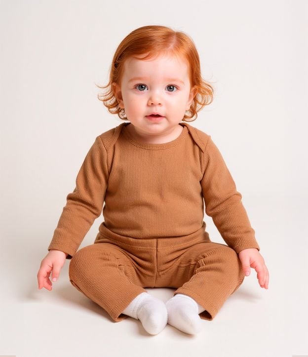 Conjunto Infantil em Ribana Básico - Tam RN a 18 meses Marrom