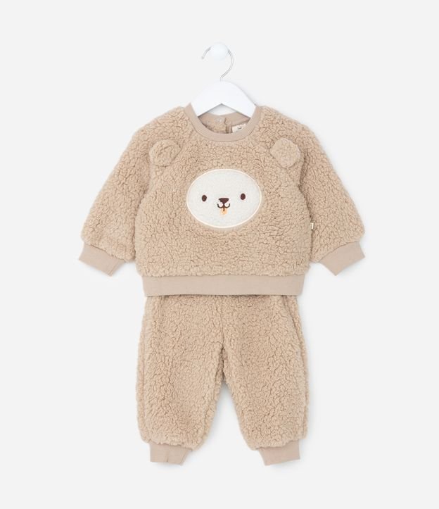 Conjunto Infantil em Sherpa com Bordado Cara de Urso Tam 0 a 18 meses