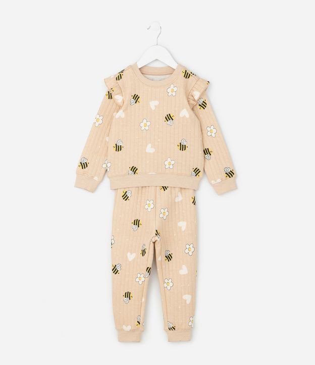 Conjunto Infantil Matelassê com Estampa Abelhas – Tam 1 a 5/6 Anos Bege Claro