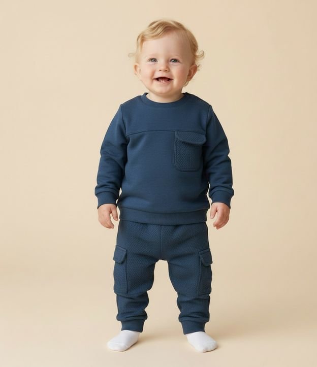 Conjunto Infantil Moletom Texturizado com Recortes – Tam 0 a 18 Meses Azul Escuro