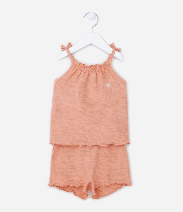 Conjunto Infantil Texturizado com Bordado de Coração e Frufru - Tam 1 a 5 Anos