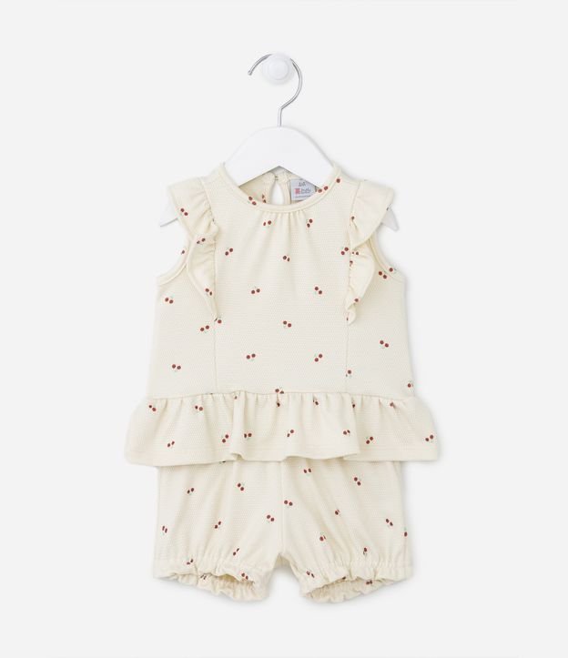 Conjunto Infantil Texturizado com Estampa de Cerejinhas - Tam 0 a 18 Meses