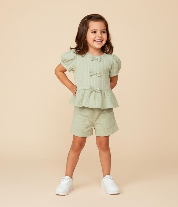 Conjunto Infantil Texturizado com Lacinhos - Tam 1 a 6 Anos Verde