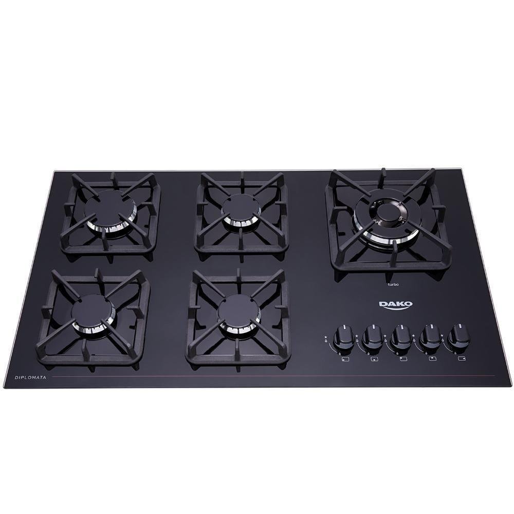 Cooktop A Gás 5 Bocas Preto Mesa De Vidro Dako Bivolt
