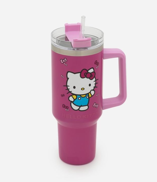 Copo Térmico com Alça e Canudo Reutilizável Estampa Hello Kitty 1,2L Rosa