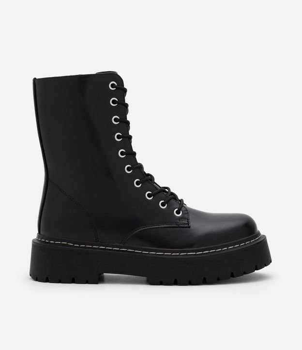 • Coturno em PU com Amarração de Cadarço e Sola Tratorada Preto 5