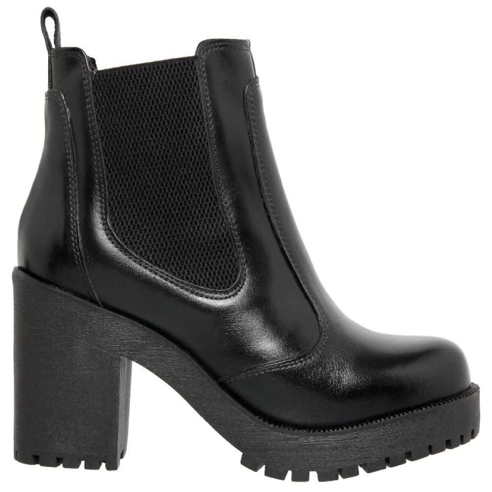 Coturno Tratorado em Couro Cano Médio Elastico Lateral First Concept Salto Alto