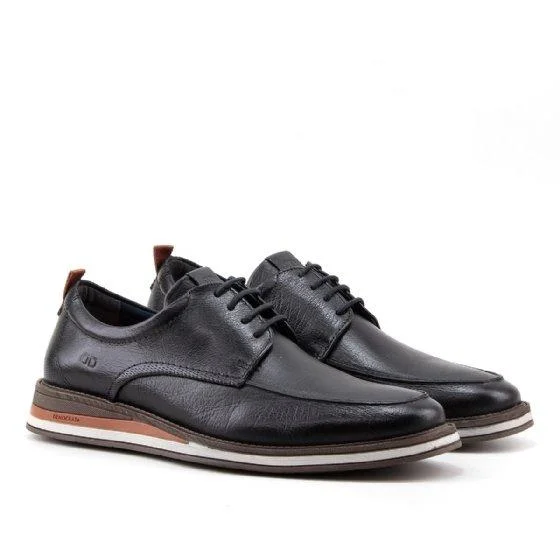 Trazendo total conforto para o homem moderno, o Sapato de couro Democrata, linha metropolitan Type possui design moderno com recortes no cabedal e puxador no calcanhar, forro de tecido, fechamento por cadarço de amarrar.