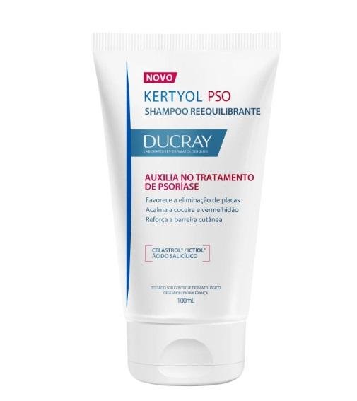 Shampoo para auxiliar no tratamento de couro cabeludo com psoríase. DUCRAY Kertyol PSO Treatment acalma a coceira e vermelhidão, favorece a eliminação de placas e reforça a barreira cutânea.